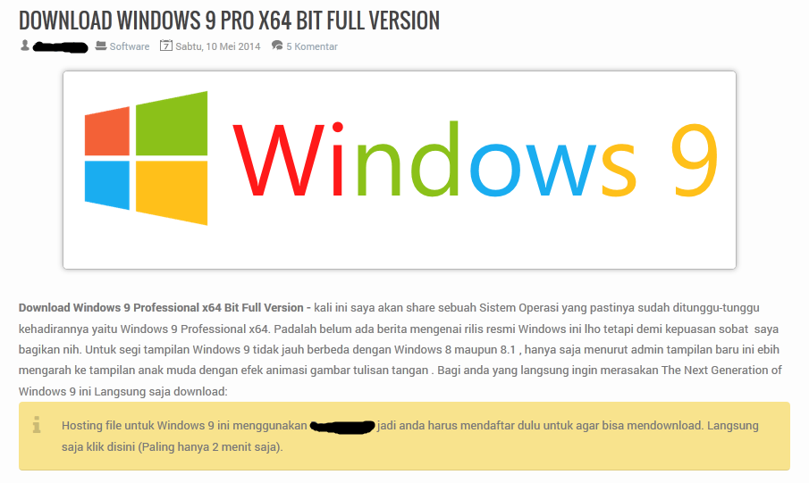 Dan yang saya tidak percaya adalah, Si Author blog tersebut mengatakan kalau sumbernya didapat dari bagas31.com tetapi saat saya cari artikel di bagas31.com tidak ada review atau download tentang windows 9. Apakah link download ini benar ?
